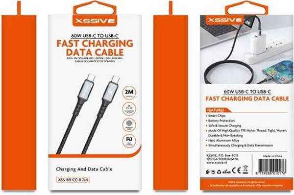 Xssive Braided 60W USB-C to USB-C Cable 2meter Zwart