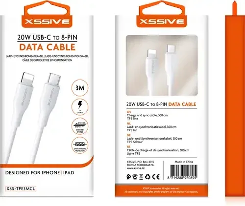 Xssive TPE Serie 20W Type-C to 8 Pin Cable 3m Wit