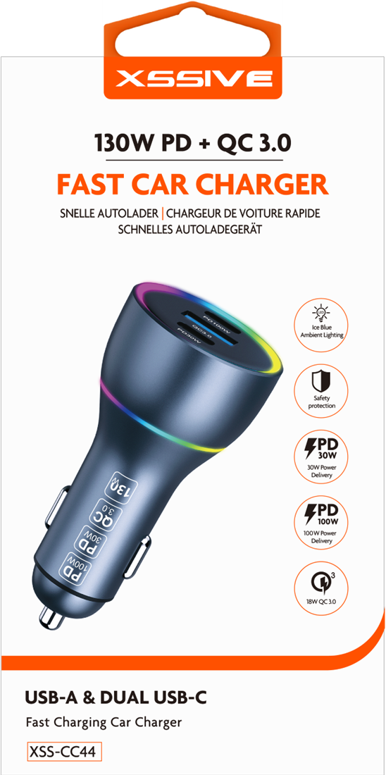 Xssive 130W PD+QC3.0 Fast Car Charger XSS-CC44 - Zwart