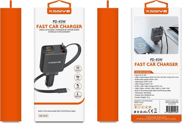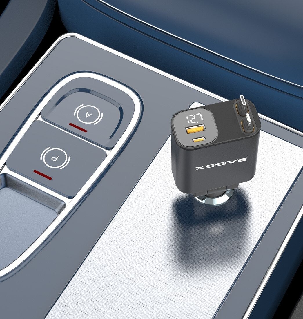 Xssive PD 45W Fast Car Charger with Retractable Cable XSS-CC47 - Zwart